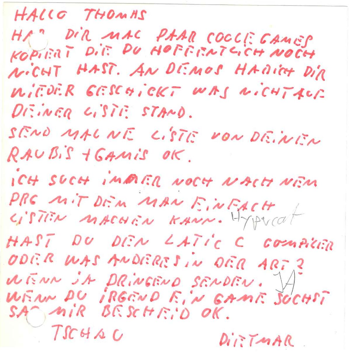 The more enterprising “commercial pirates” did not just wait until a cracked game would fall into their hands. They actively pursued contacts to cracking groups and tried to negotiate a steady supply of cracked software – like the two Yugoslav pirates whose letters you can see above. They did not assume the role of humble petitioners, but acted as self-confident experts who knew exactly what they wanted (“no freez frame, no icepick” [sic]). Serving quality cracks to the local computer users, they – nolens volens – became the pioneers of the world-wide triumphant march of the home computer.
